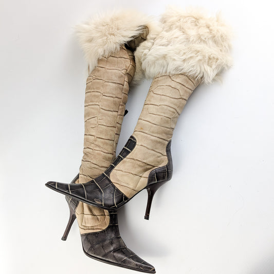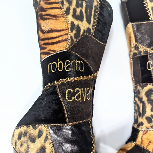 Roberto Cavalli patchwork leather and fur boots - EU39|UK6|US8