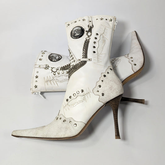El Dantes white ankle boots decorated with studs and chains - EU41|UK8|US10
