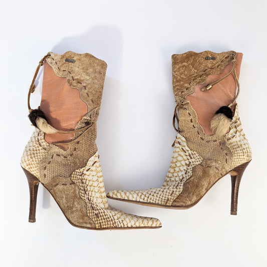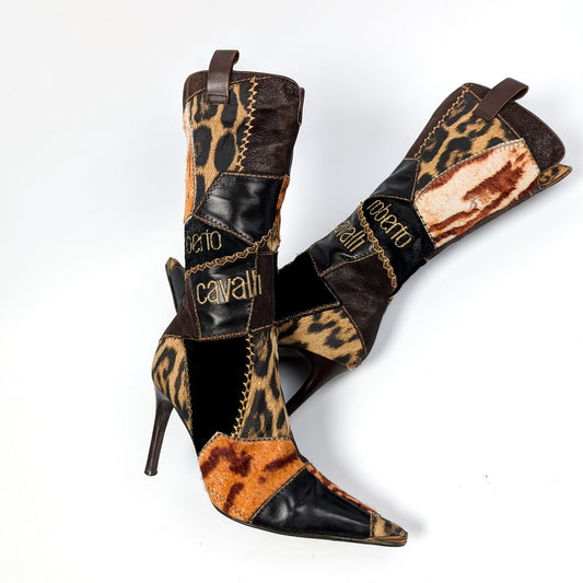 Roberto Cavalli leather and fur patchwork boots - EU38 | UK5 | US6.5
