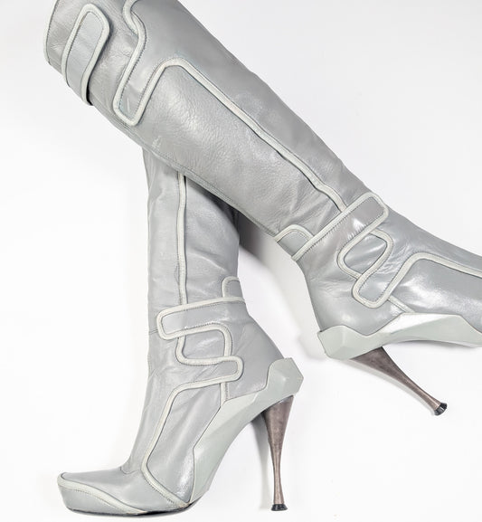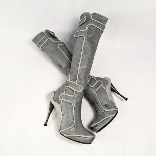 Celine high boots in gray leather -FW2008