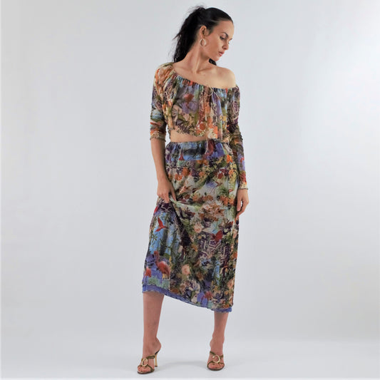 Jean-Paul Gaultier set in mesh with tropical flamingo print S/S1999