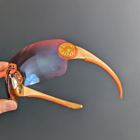 Purple and orange Dior “Your Dior 2” logo sunglasses by Galliano.