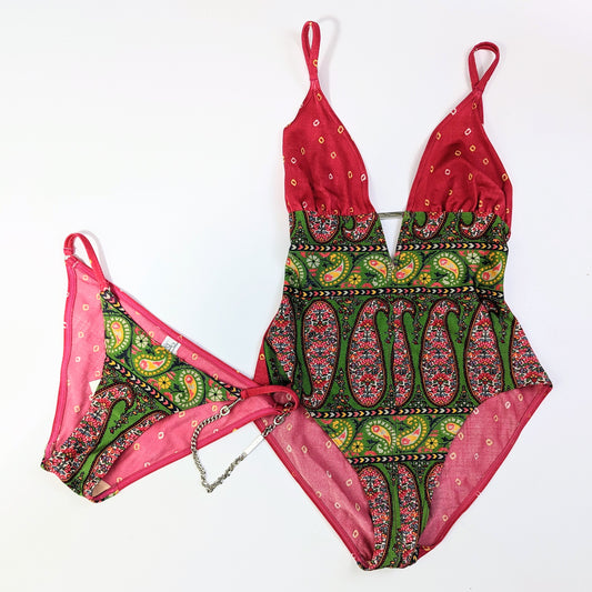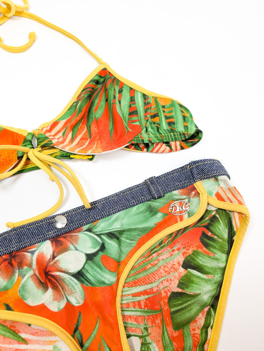 Dior swimsuit and sarong by Galliano - Multicolored flower pattern.