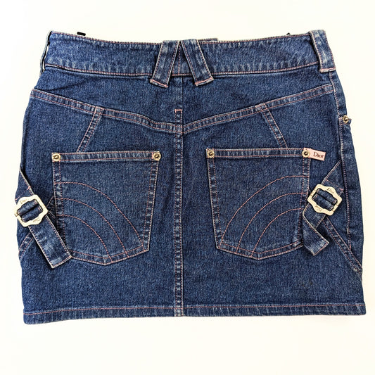 Denim mini skirt with Dior pink stitching by Galliano - S
