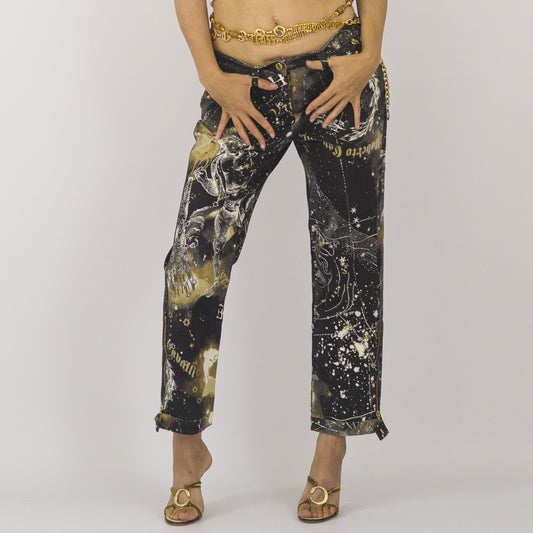 Roberto Cavalli Zodiac Constellation Print Stretch Denim Pants - AW2003
