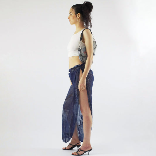 Dior pareo skirt by Galliano with trompe l'oeil denim jeans print - S/S2000