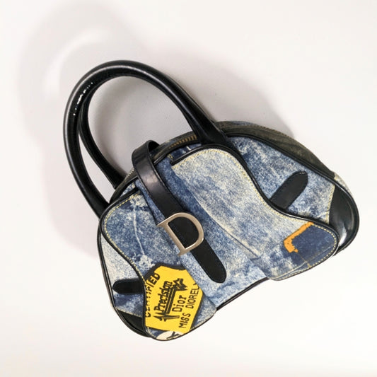 Mini Saddle Bowler Denim Dior bag by Galliano