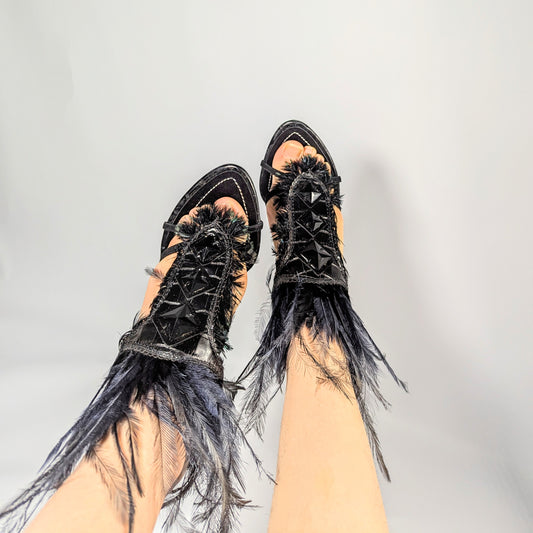 Dior by Galliano S/S 2004 Black Feather High-Top Sandals - EU37|4UK|6US