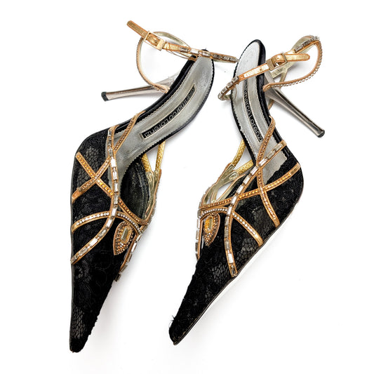 Gianmarco Lorenzi slingback adorned with Swarovski crystals - EU37|UK4|US6