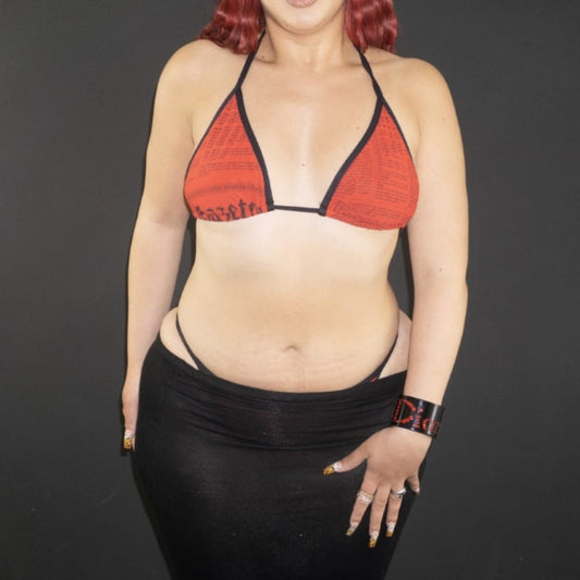 Galliano red and black newspaper print bikini swimsuit - M/L