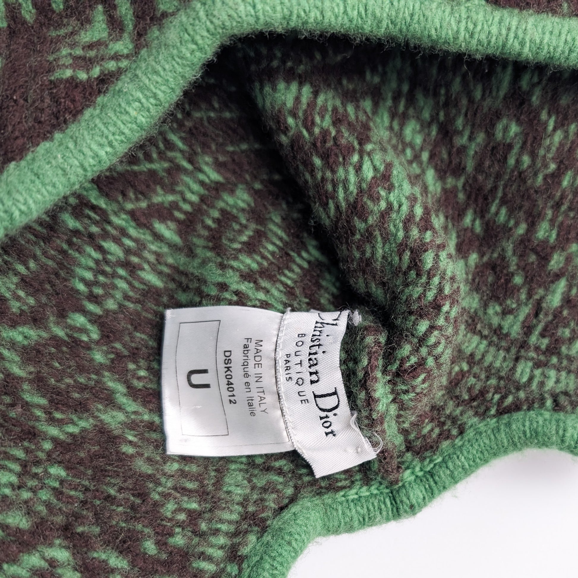 Item: Dior by Galliano green and brown hat with integrated scarf. Fits a small head