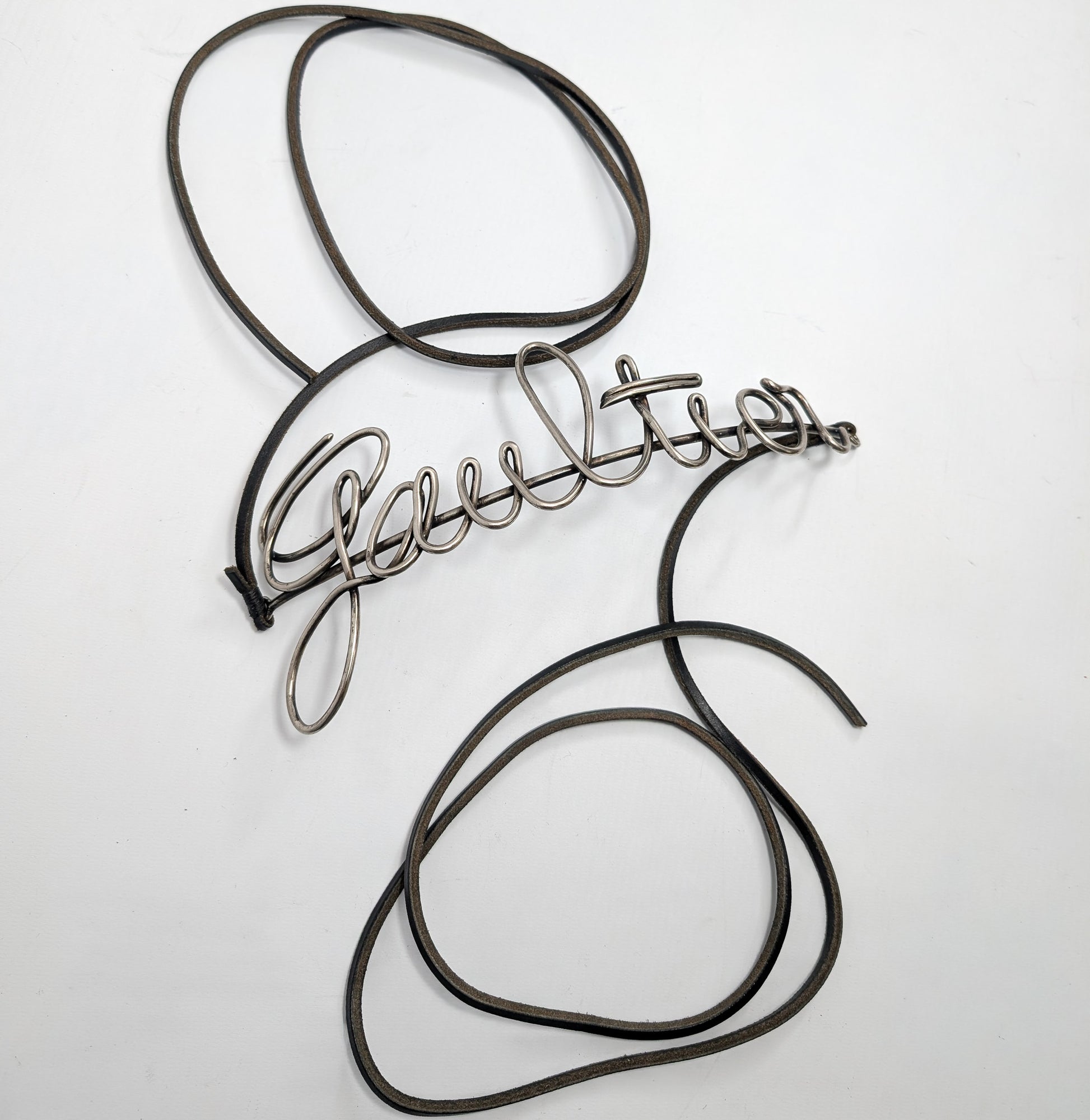 Material : metal with leather cord.