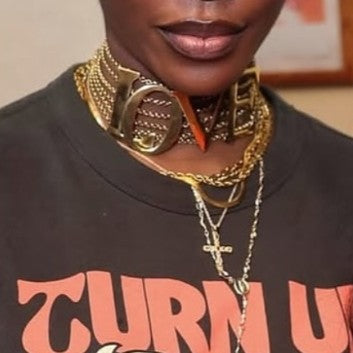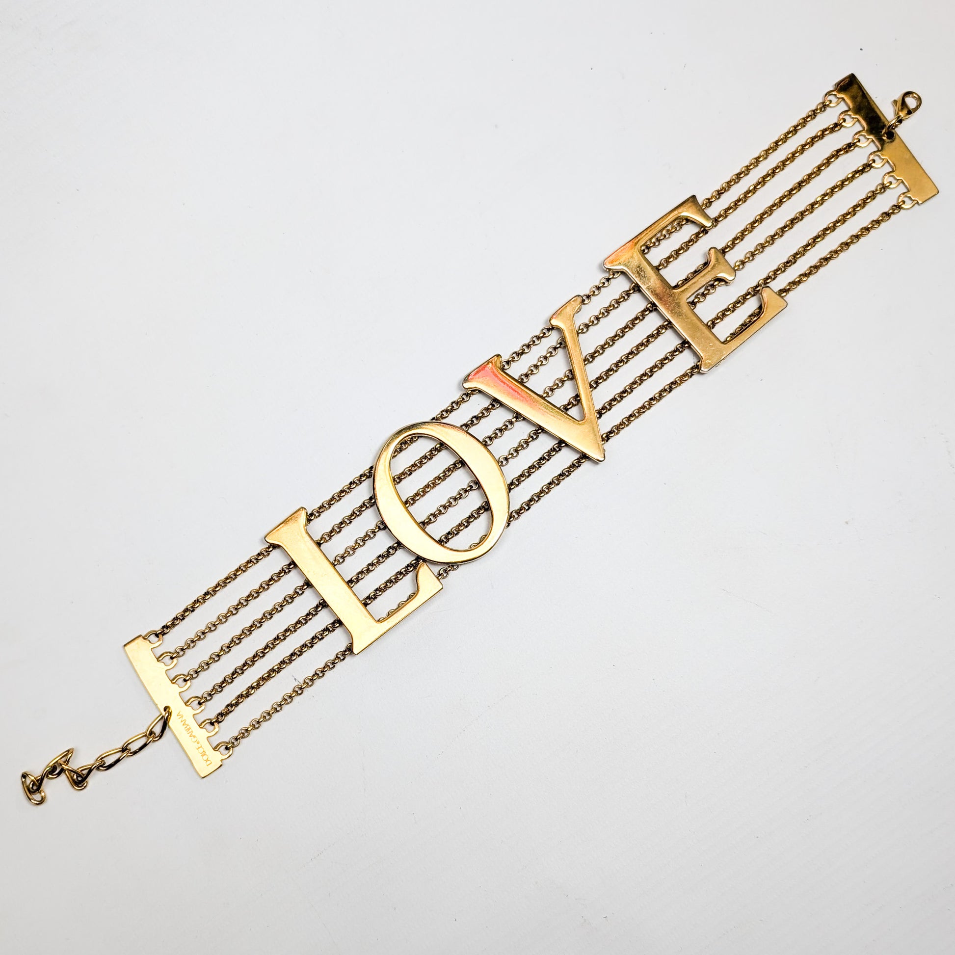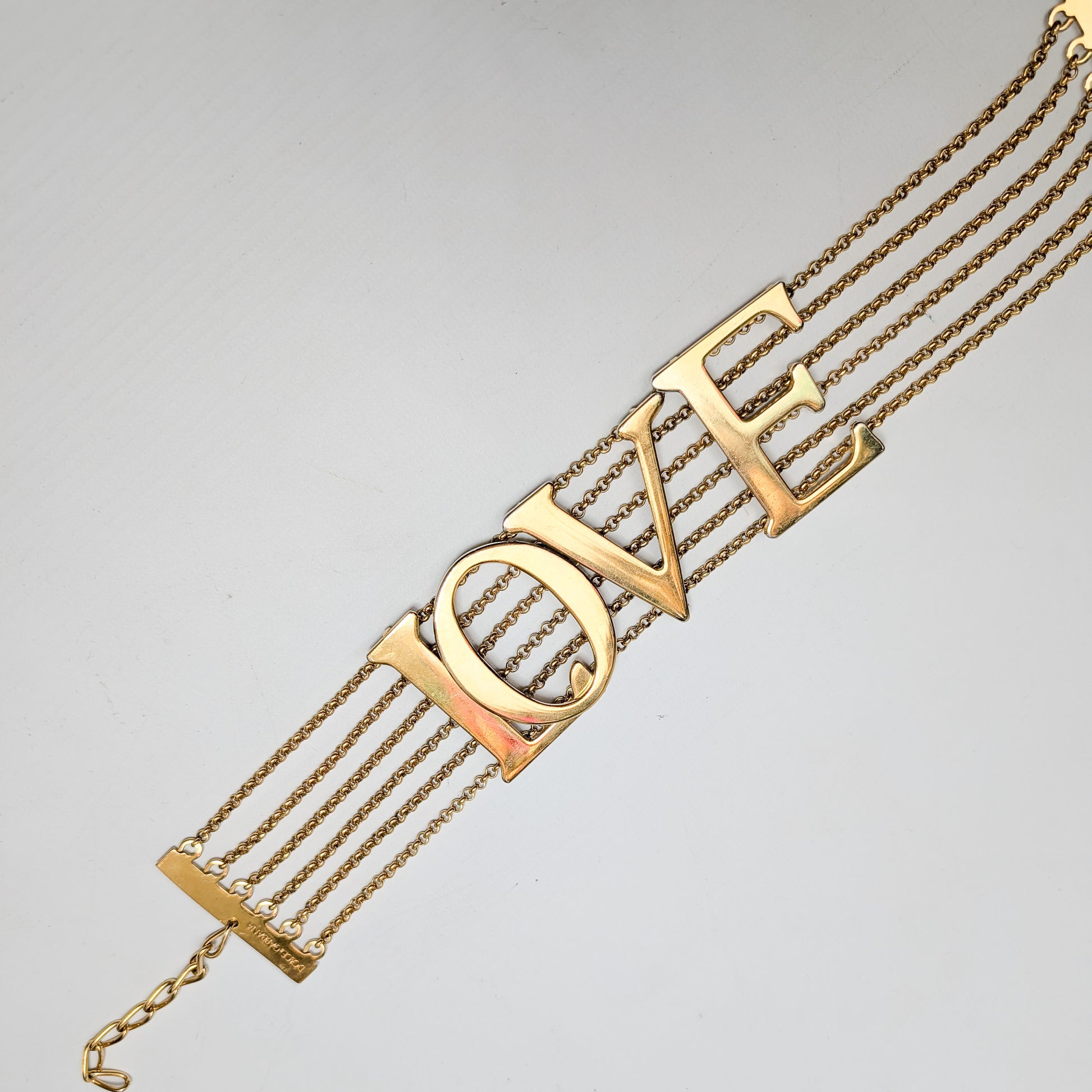 Item: Gold-plated "LOVE" choker necklace. Iconic piece copied by Dolce & Gabbana.