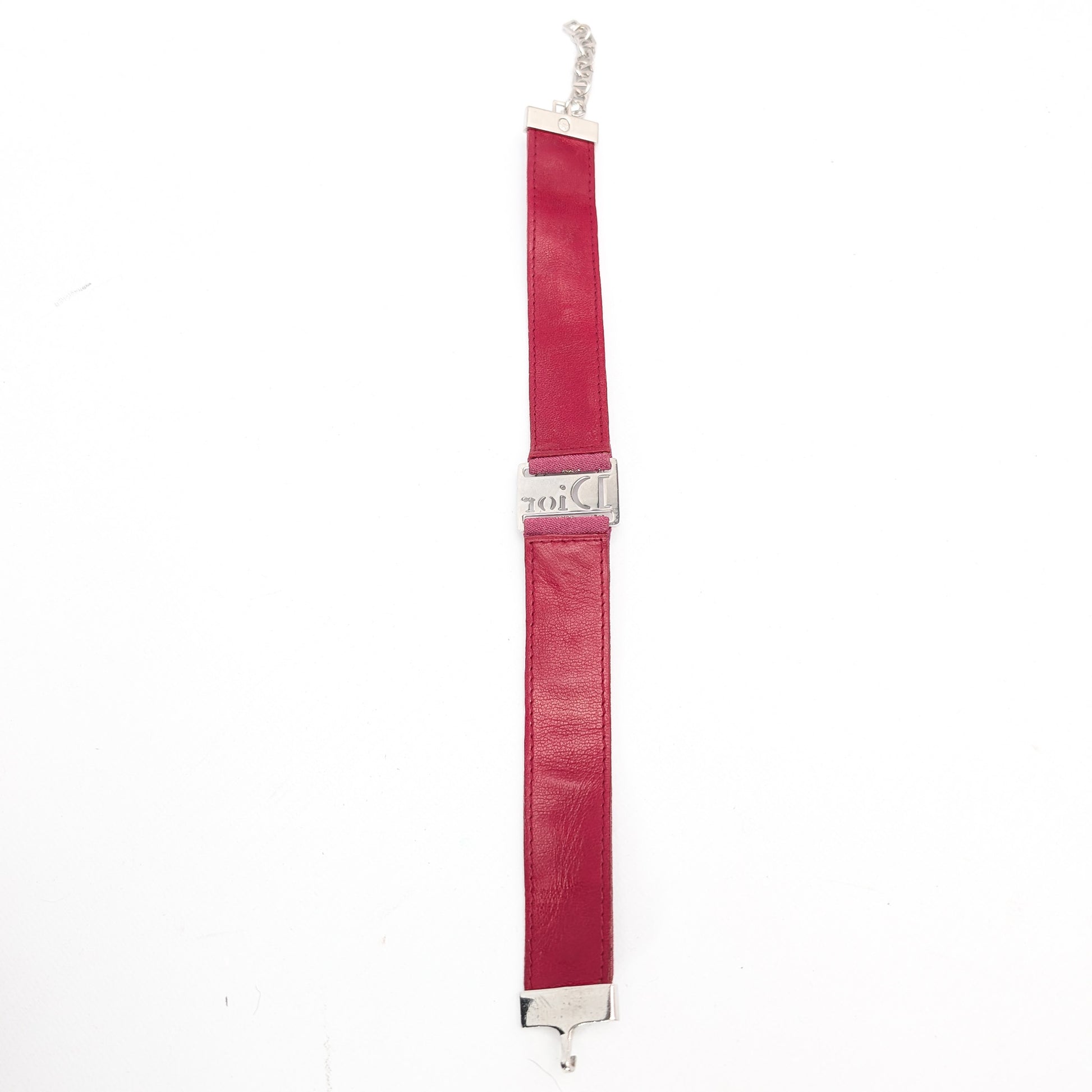Item: Pink embroidered leather-lined choker. "Dior" metal logo.