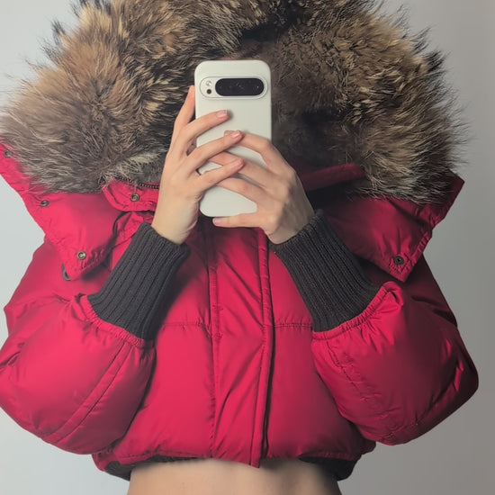 Dsquared2 short red fur puffer jacket