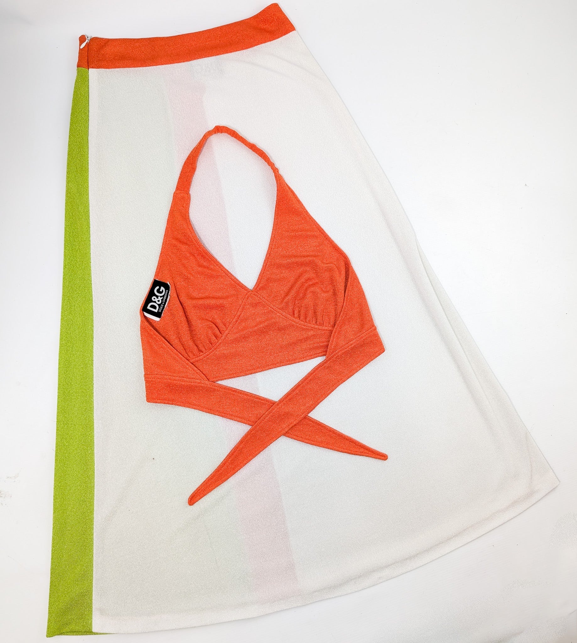 Item: Set including a multi-colored Dolce & Gabbana long skirt and crop top.