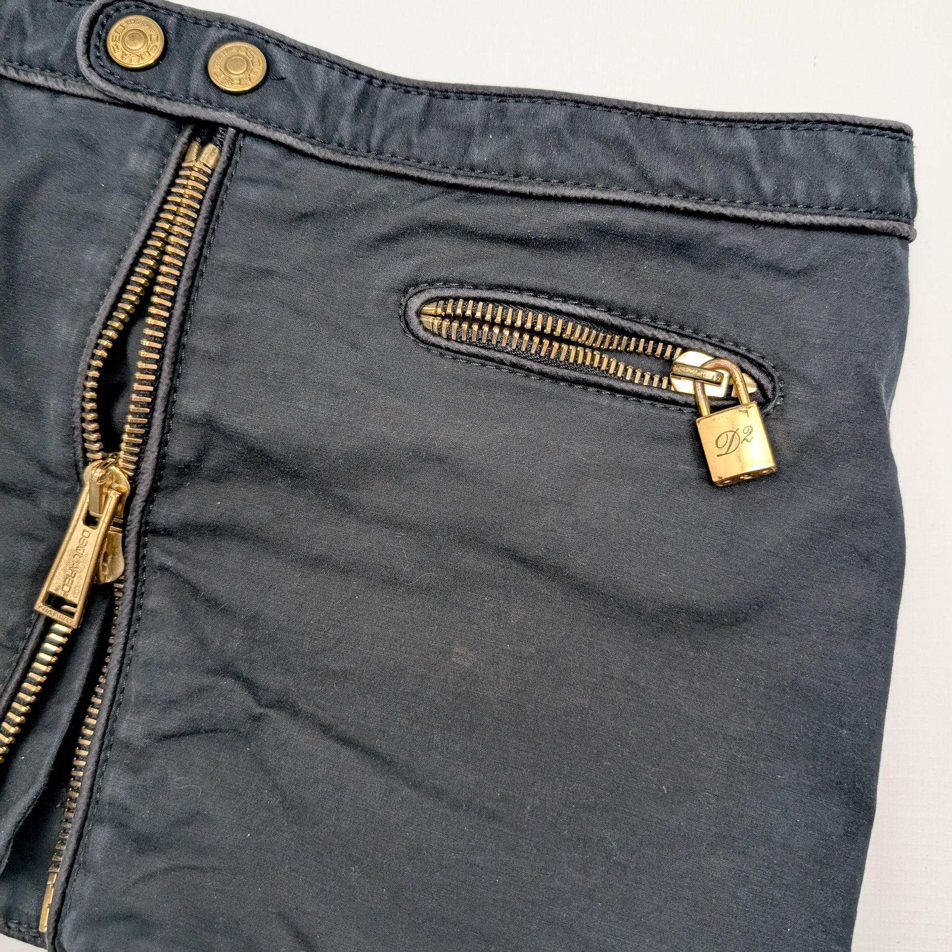 Item: Dsquared2 mini skirt decorated with a gold padlock.