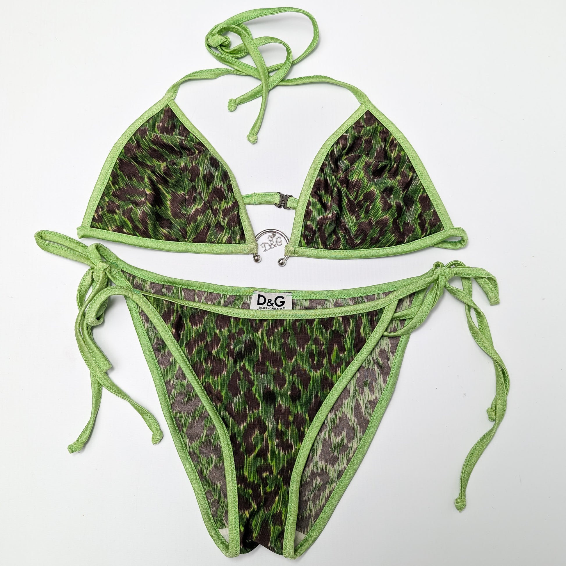 Item: Dolce & Gabbana swimsuit with animal print in green, adorned with a "D&G" jewel.