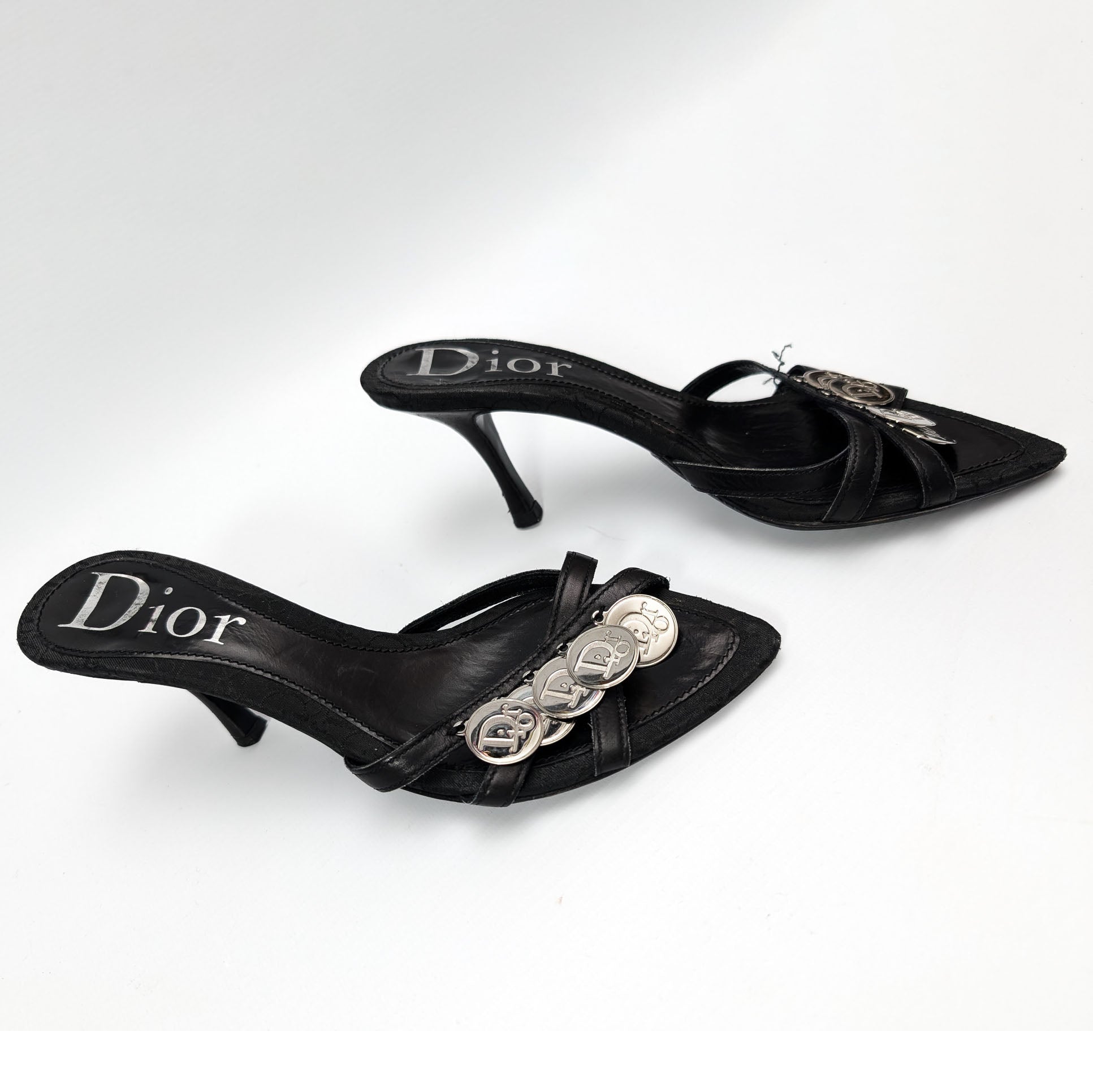 Item: Dior by John Galliano mules with straps embellished with "Dior" signed pieces.