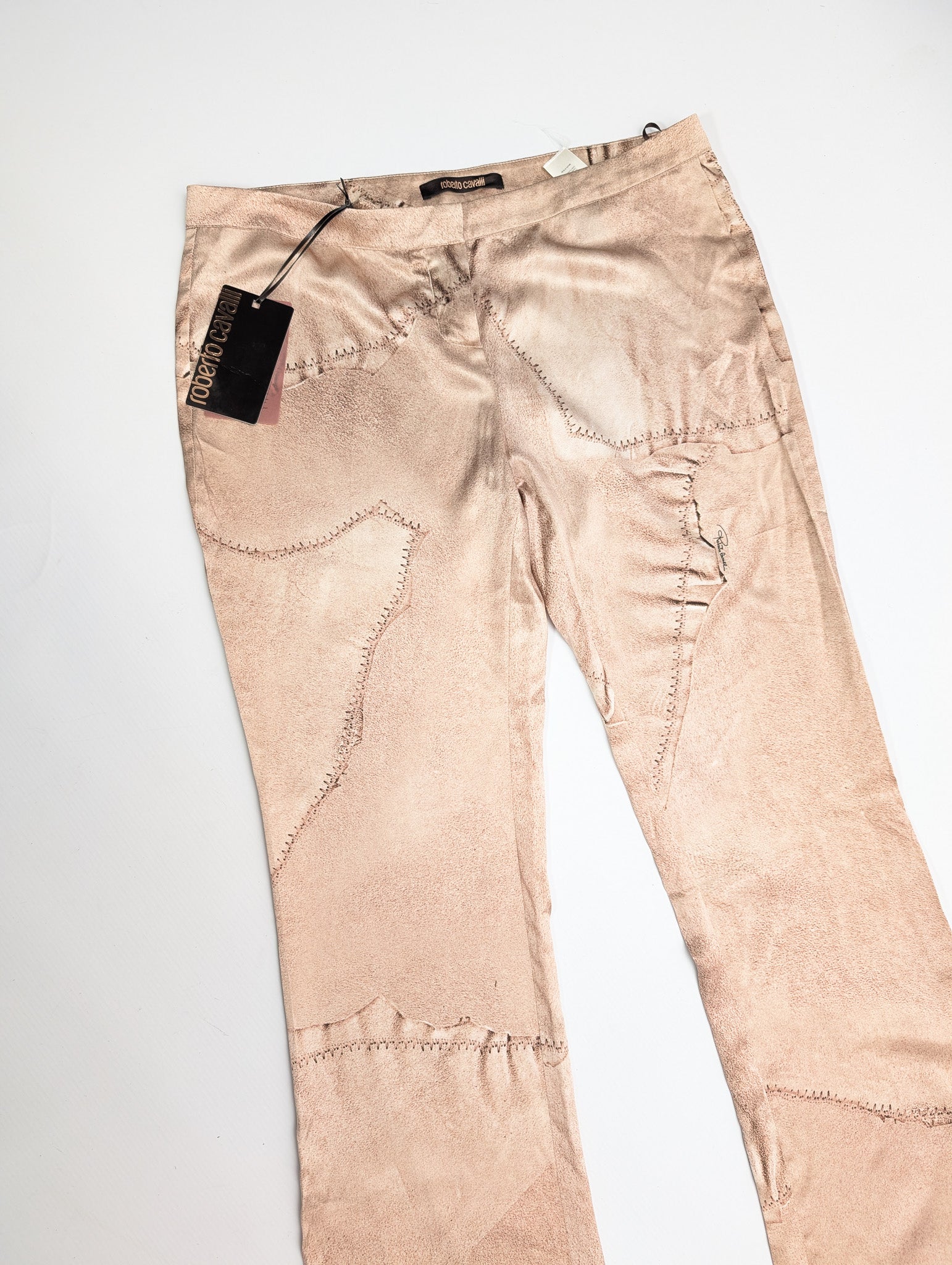 Item: Roberto Cavalli low-rise silk trompe l'oeil trousers.