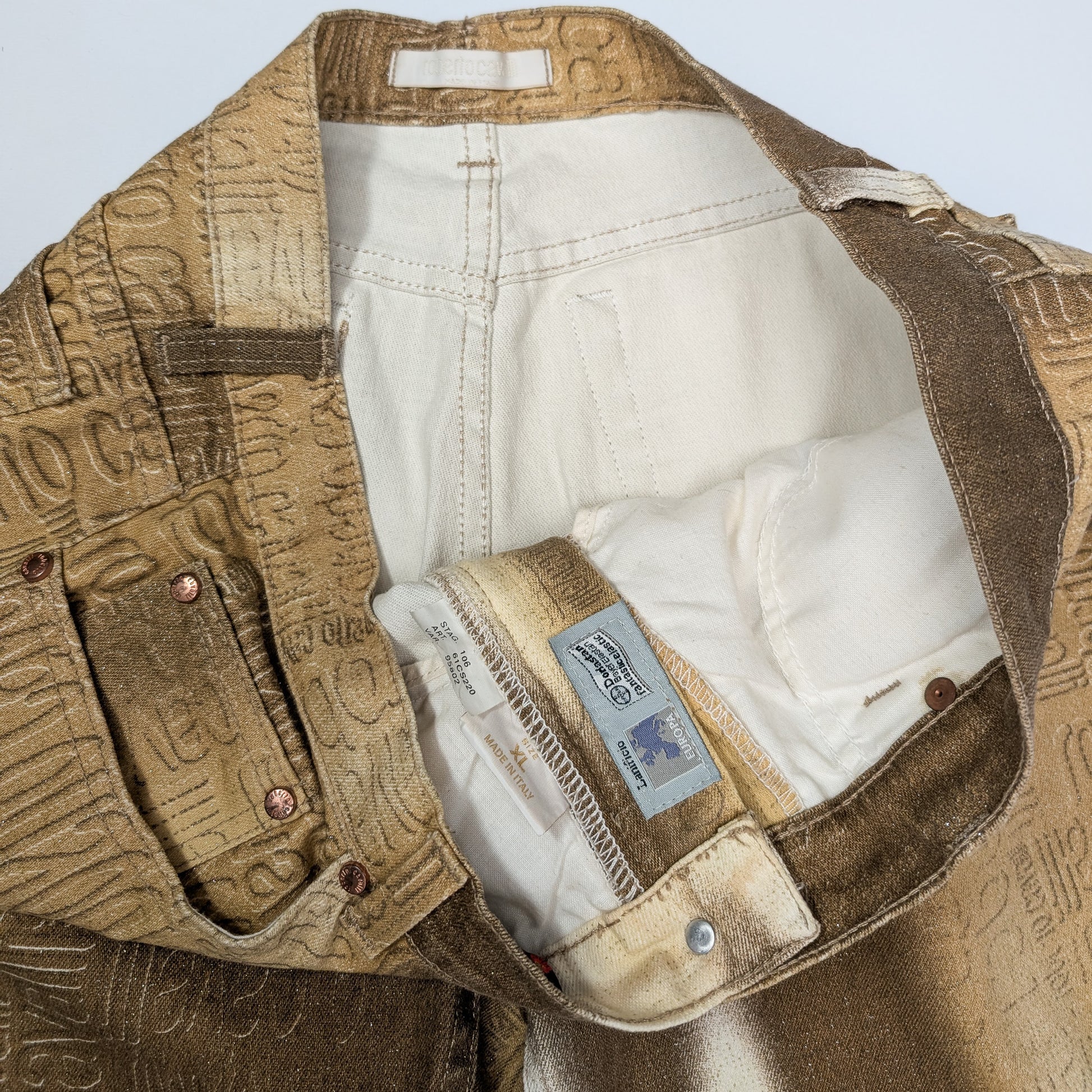Item: Roberto Cavalli monogram low-rise pants with abstract print.