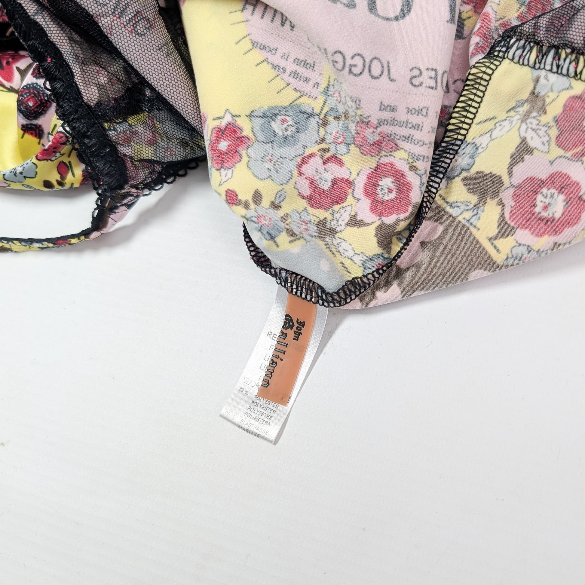 Item: John Galliano silk mini dress with "Galliano" inscription.