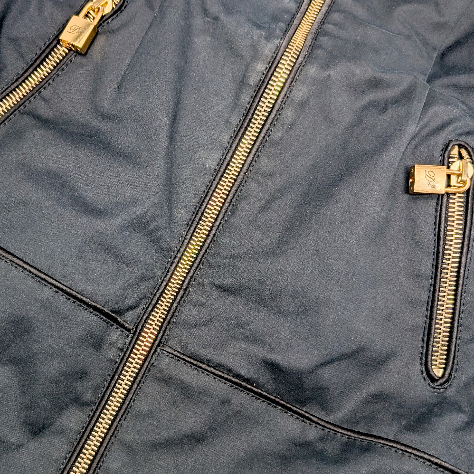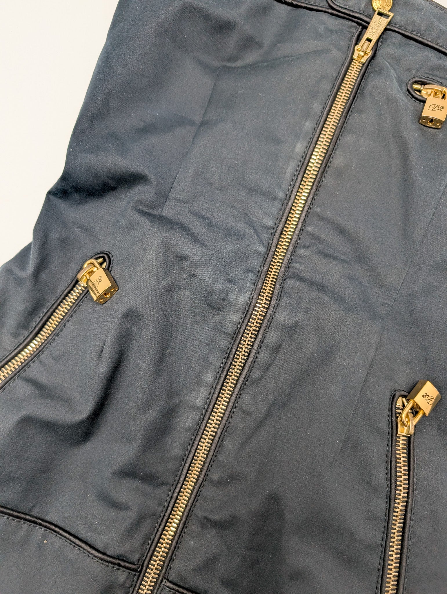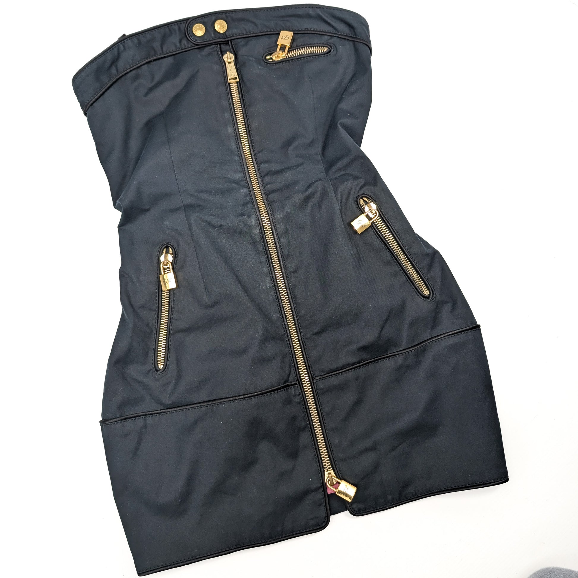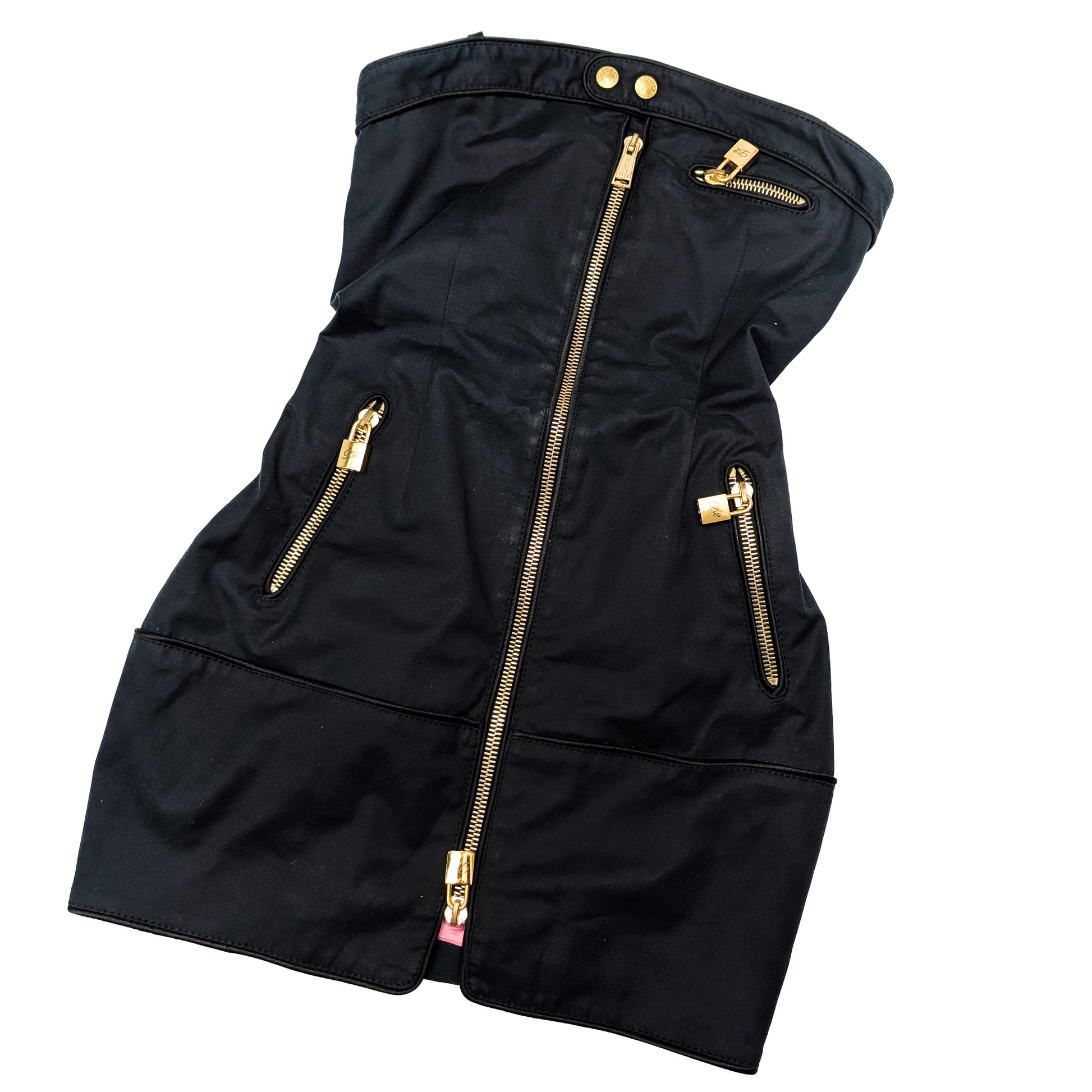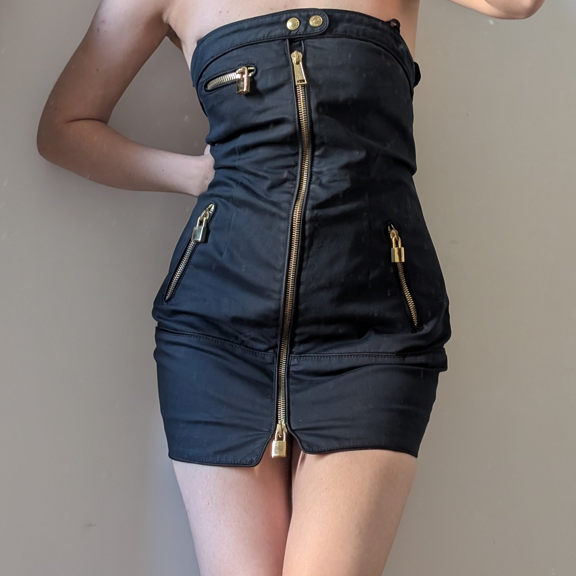 Item: Dsquared2 black bandeau mini dress with gold padlock.