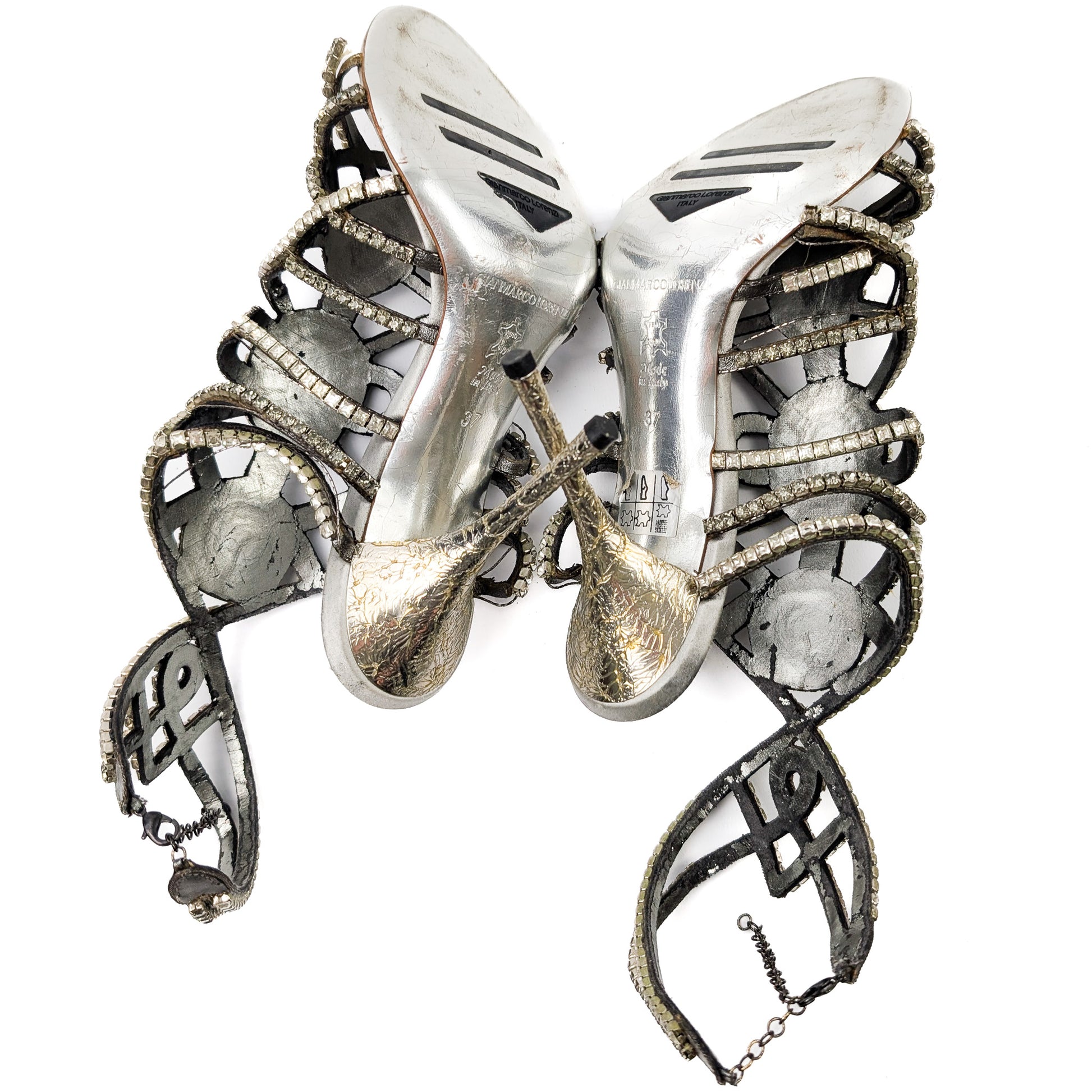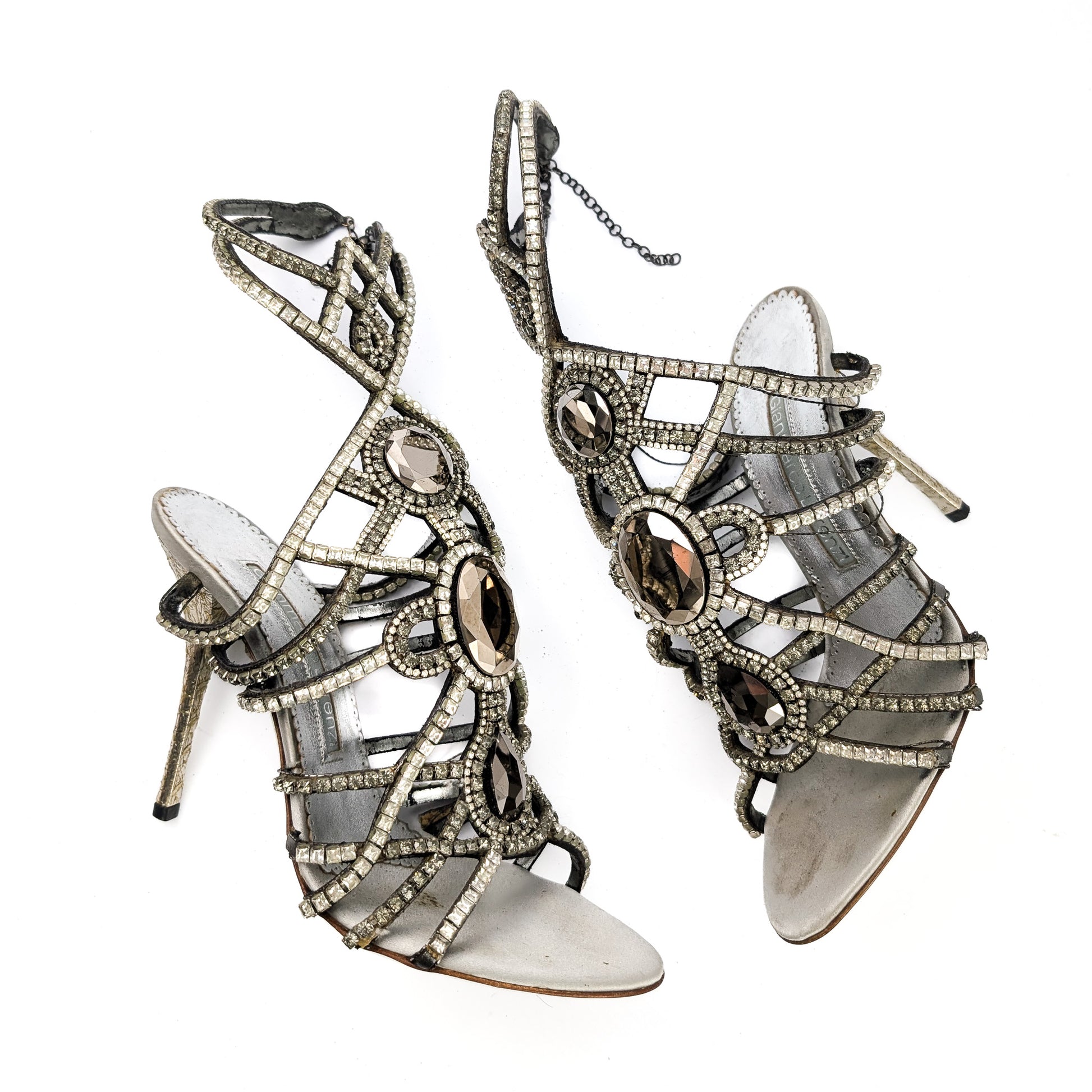 Item: Gianmarco Lorenzi high sandals decorated with stone and mini crystals.