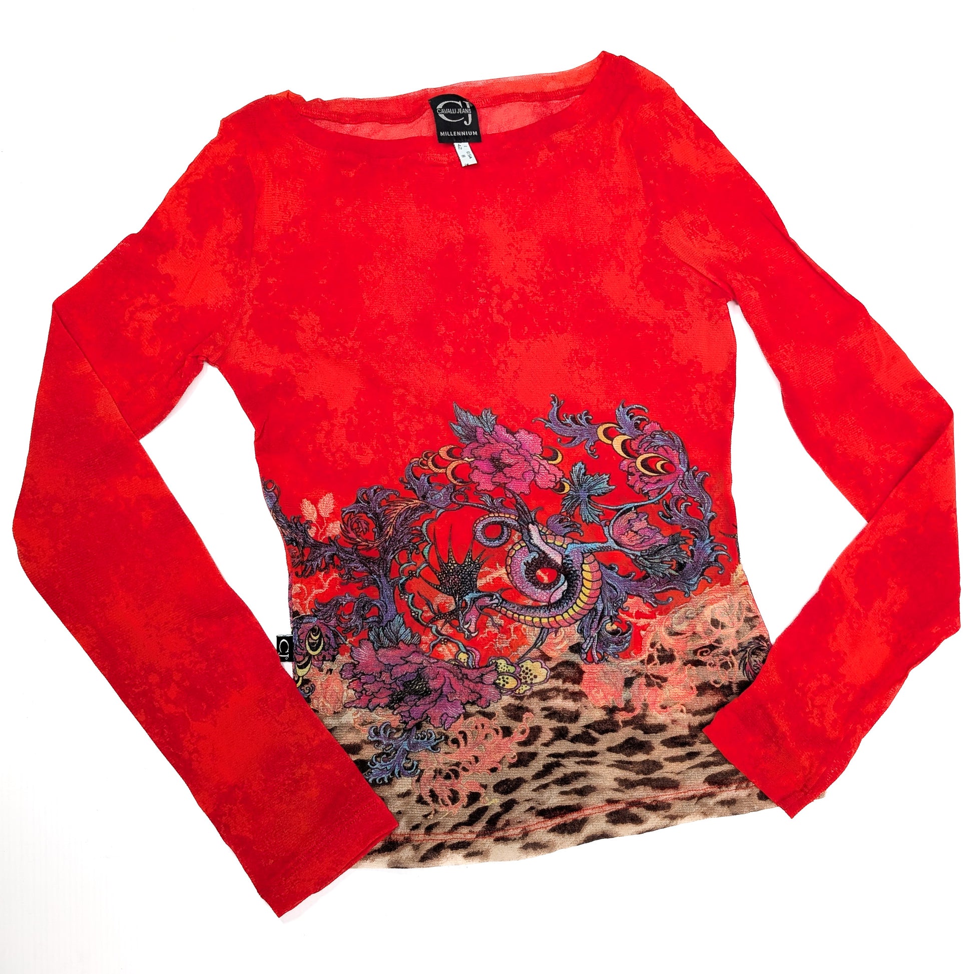 Item: Roberto Cavalli Cheongsam floral print stretch T-shirt.