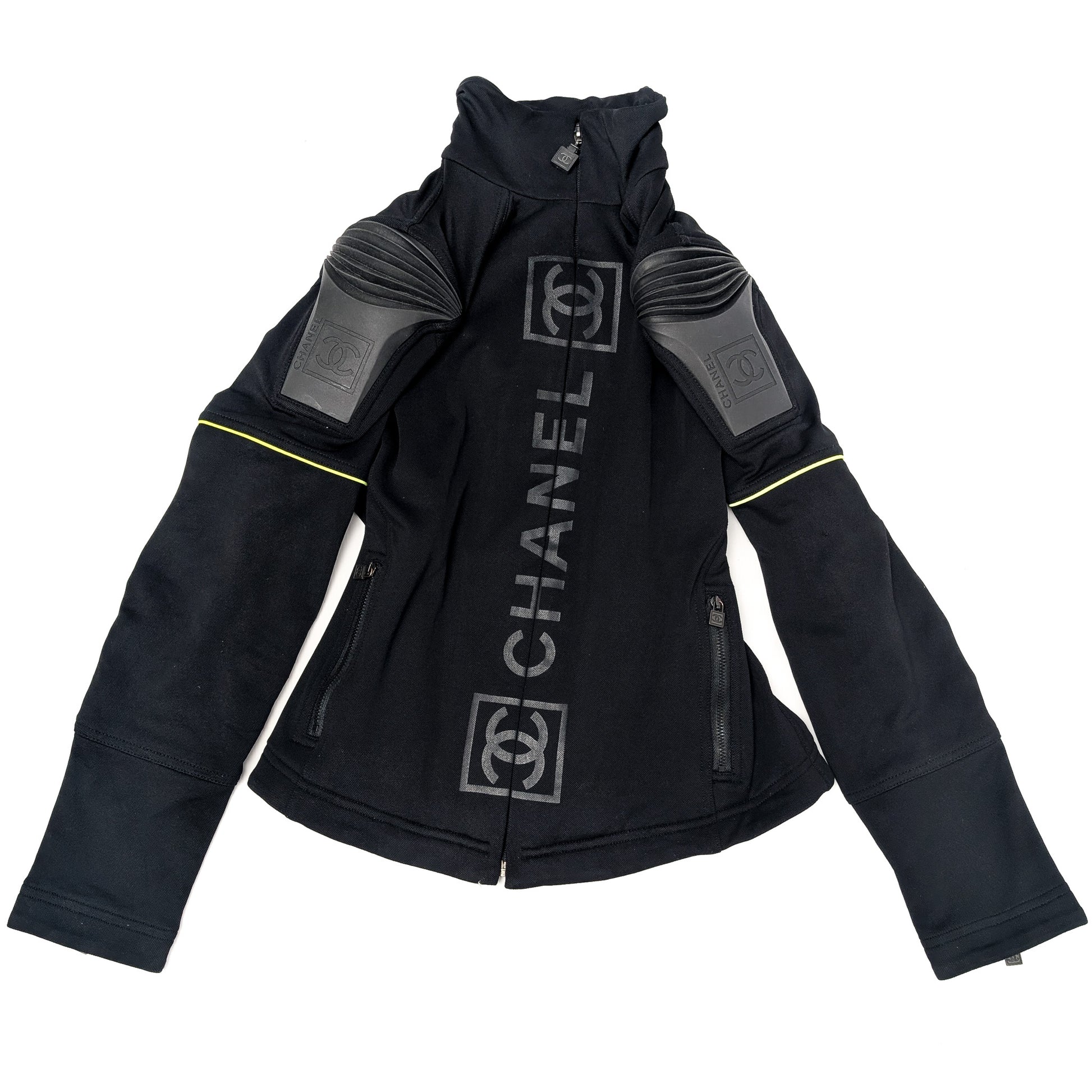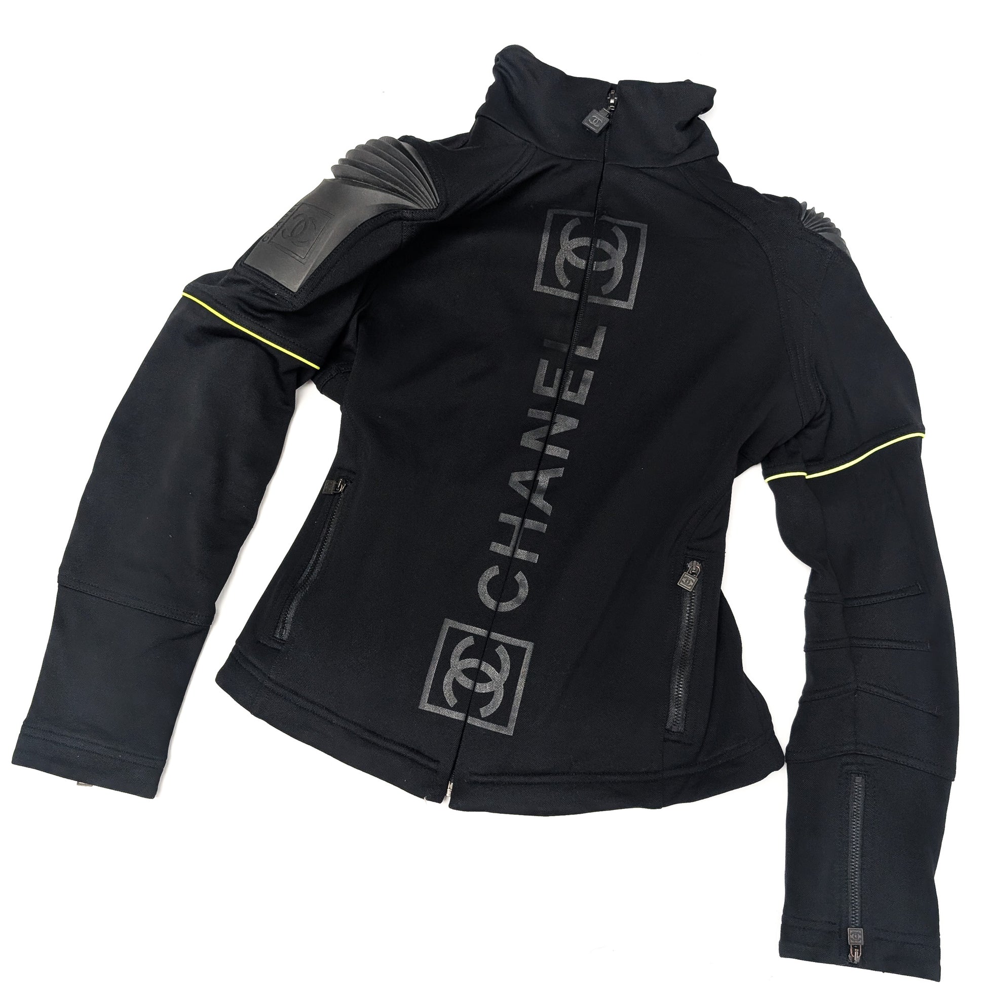 Item: Chanel sport jacket, adorned with a Chanel logo on the shoulder.