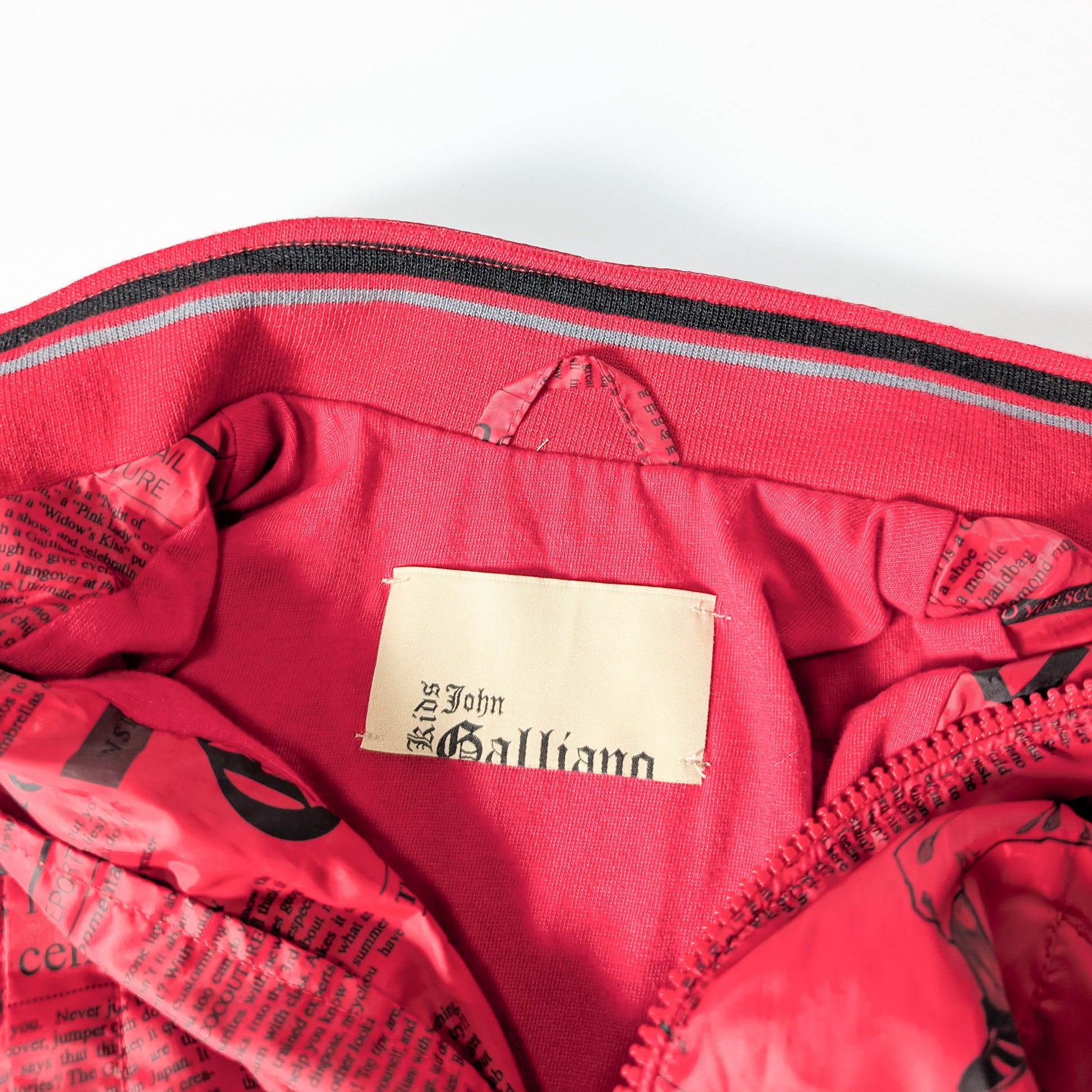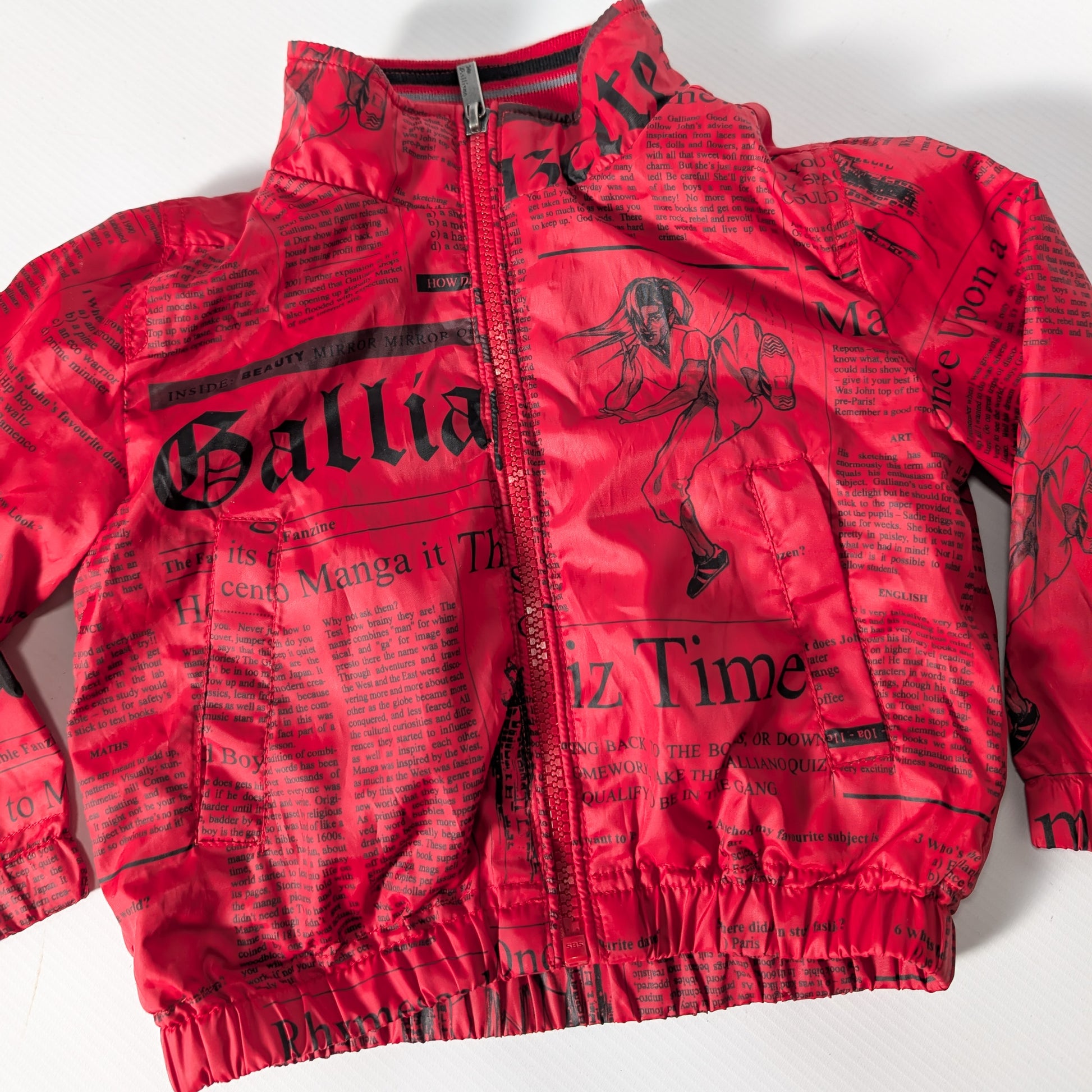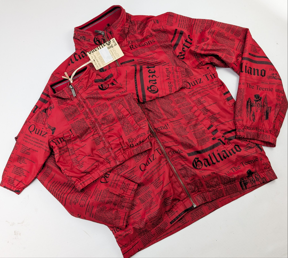 Item: John Galliano monogram red sports style jacket. The same jacket in women's size is available for a tween Mommy and Baby look.